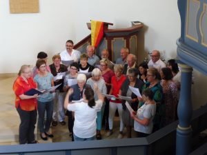 Zum Schluss füllte sich die Christuskirche noch einmal gut zur Andacht zum Ausklang. Posaunenchor und ein großer „Kirchenfest-Chor“ übernahmen dabei die musikalische Ausgestaltung.